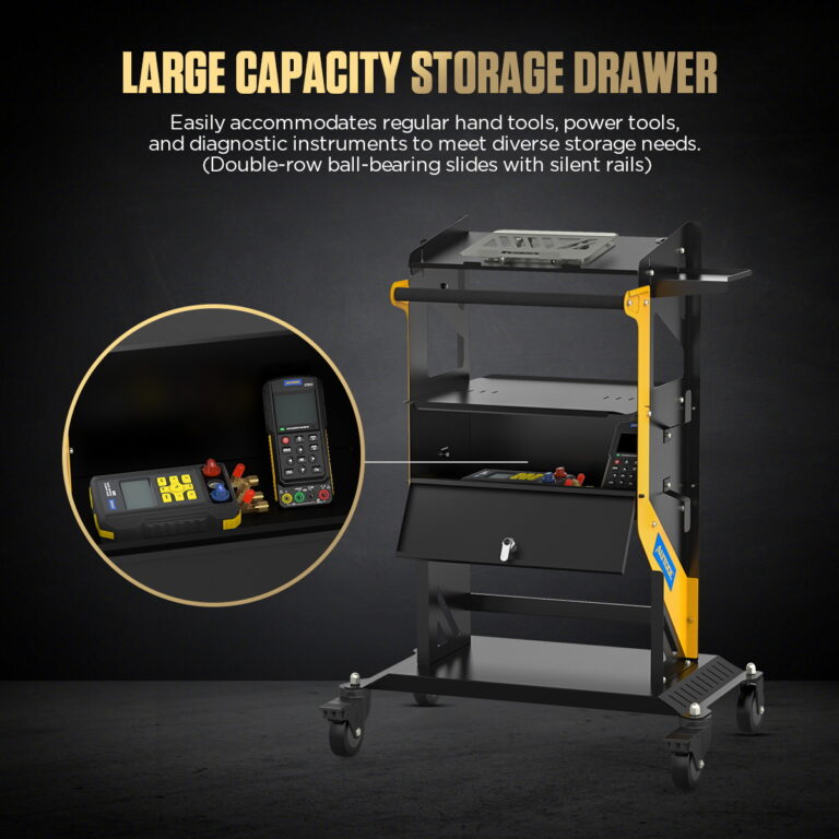 MOVILIDAD FLUIDA Y ESTABILIDADEl trabajo en el taller requiere movimientos frecuentes del equipo. El AUTOOL T23 está diseñado para maniobrarse de forma ligera y precisa, incluso a plena carga. Ruedas Heavy Duty silenciosas: Ruedas giratorias de 4 pulgadas con rodamientos que se mueven sin ruido, protegiendo el suelo del taller. Bloqueo de seguridad: Dos ruedas están equipadas con frenos sólidos que inmovilizan el carro en la posición deseada. Asa ergonómica: El mango perfilado con revestimiento antideslizante facilita empujar y tirar del carro. |