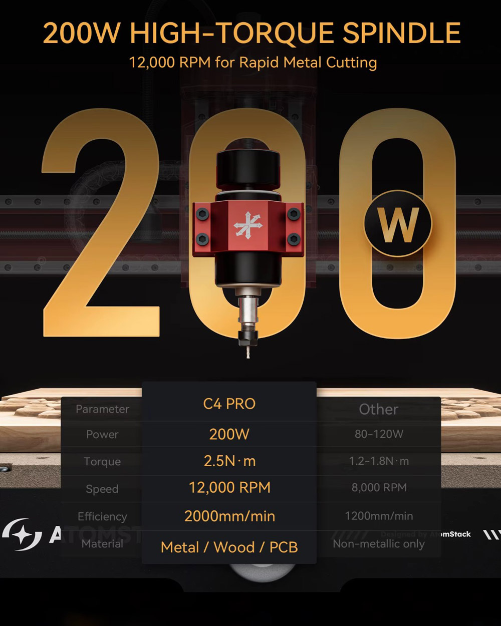 Características principales de la fresadora CNC Atomstack C4 Pro: